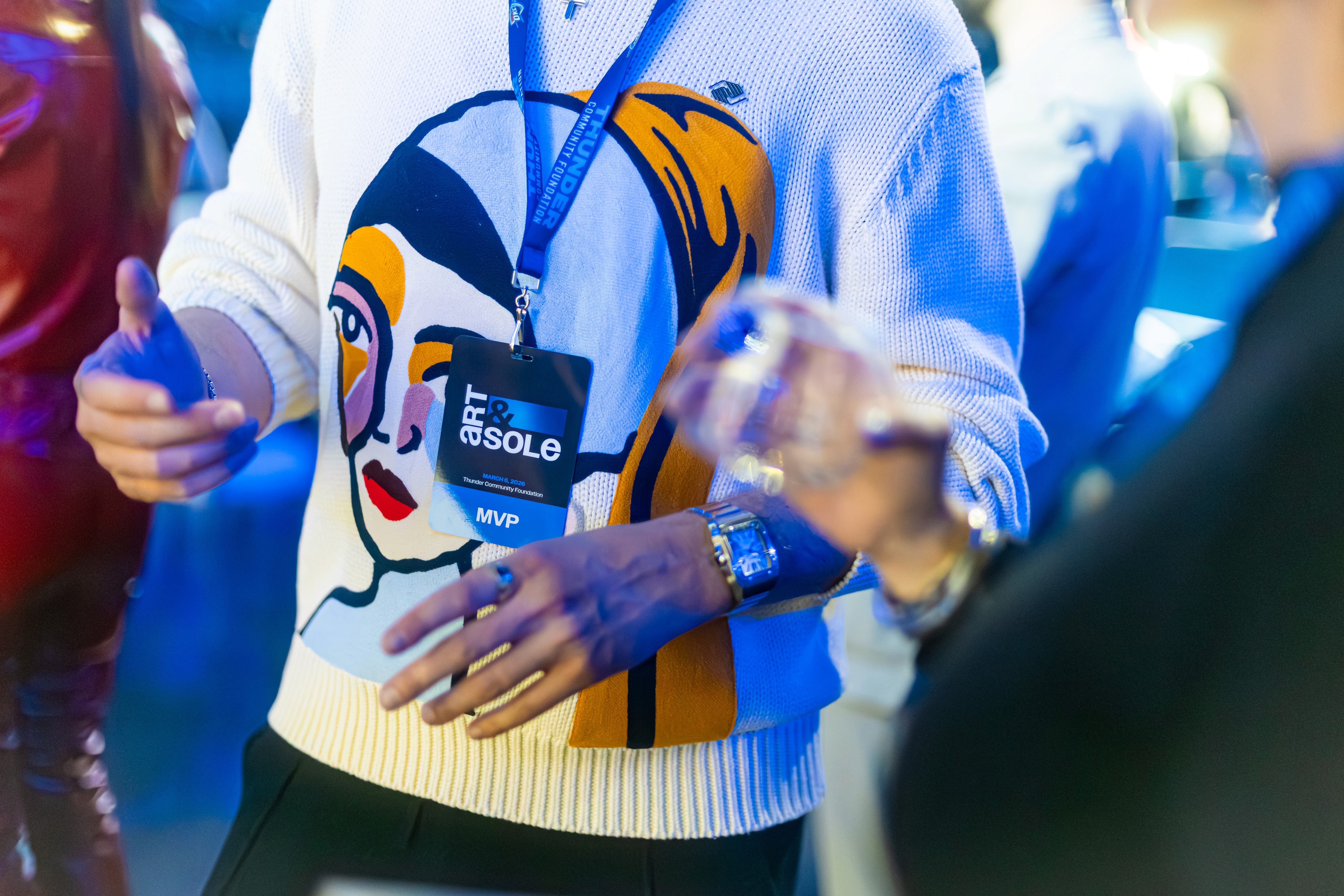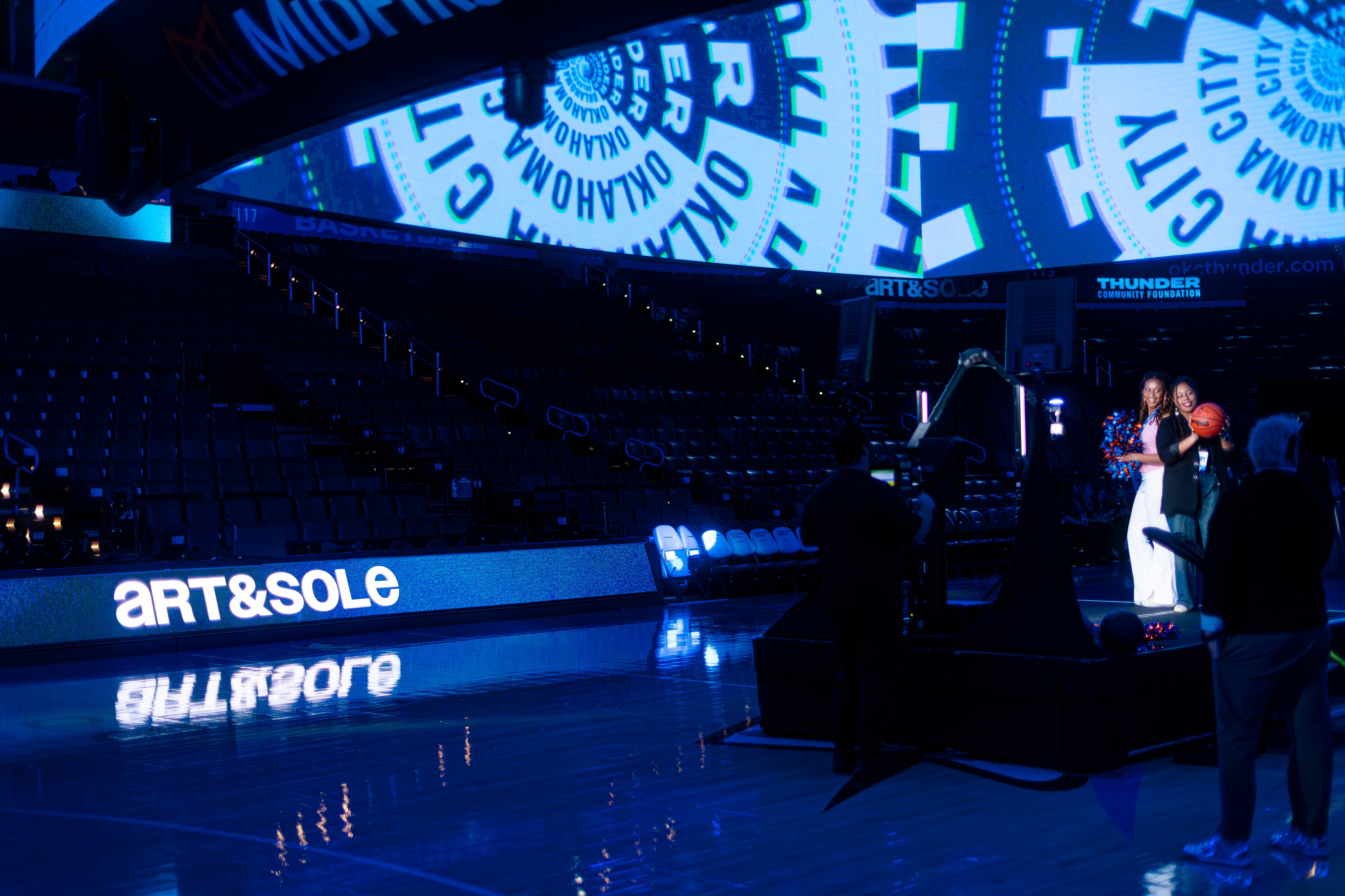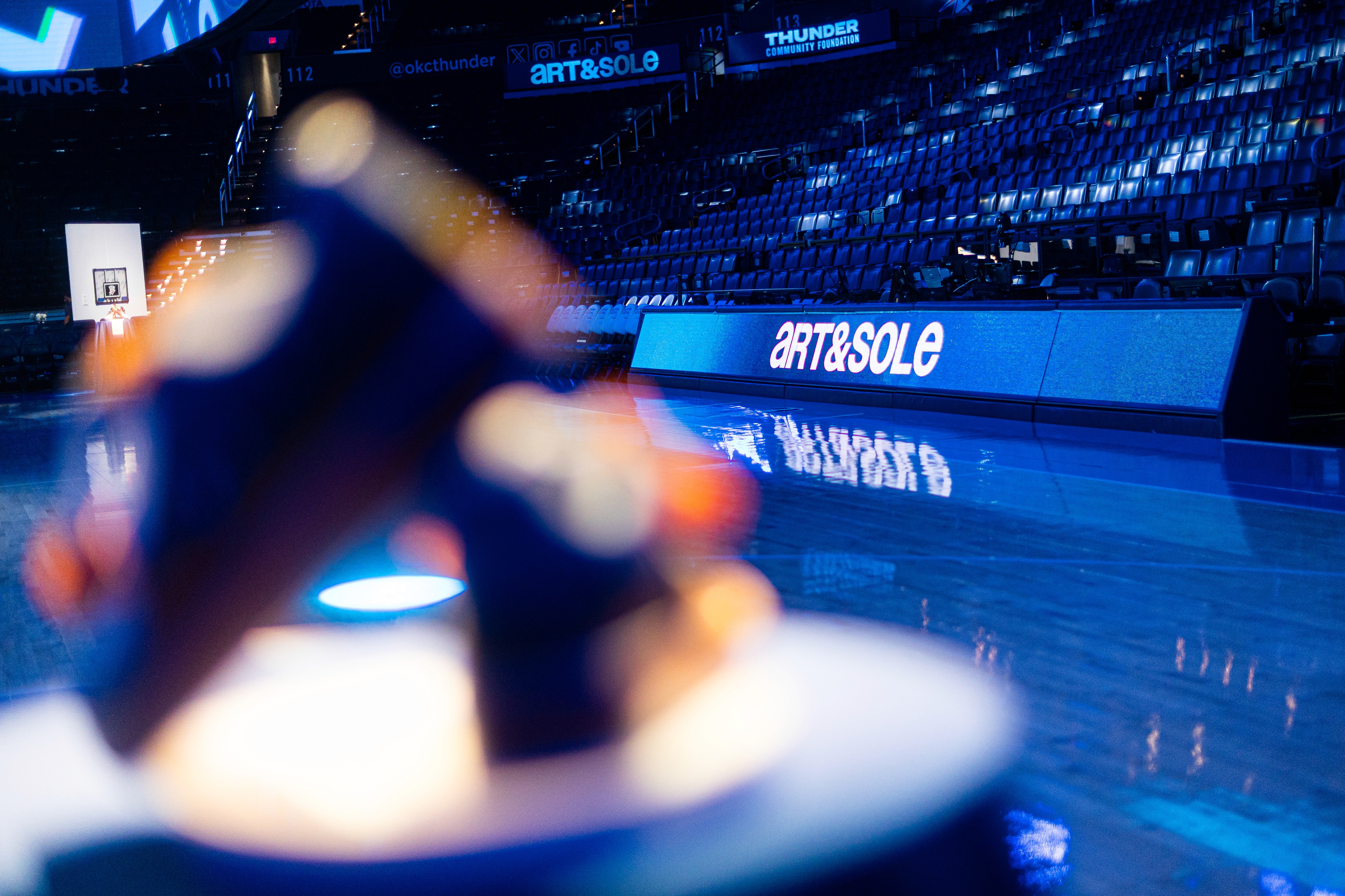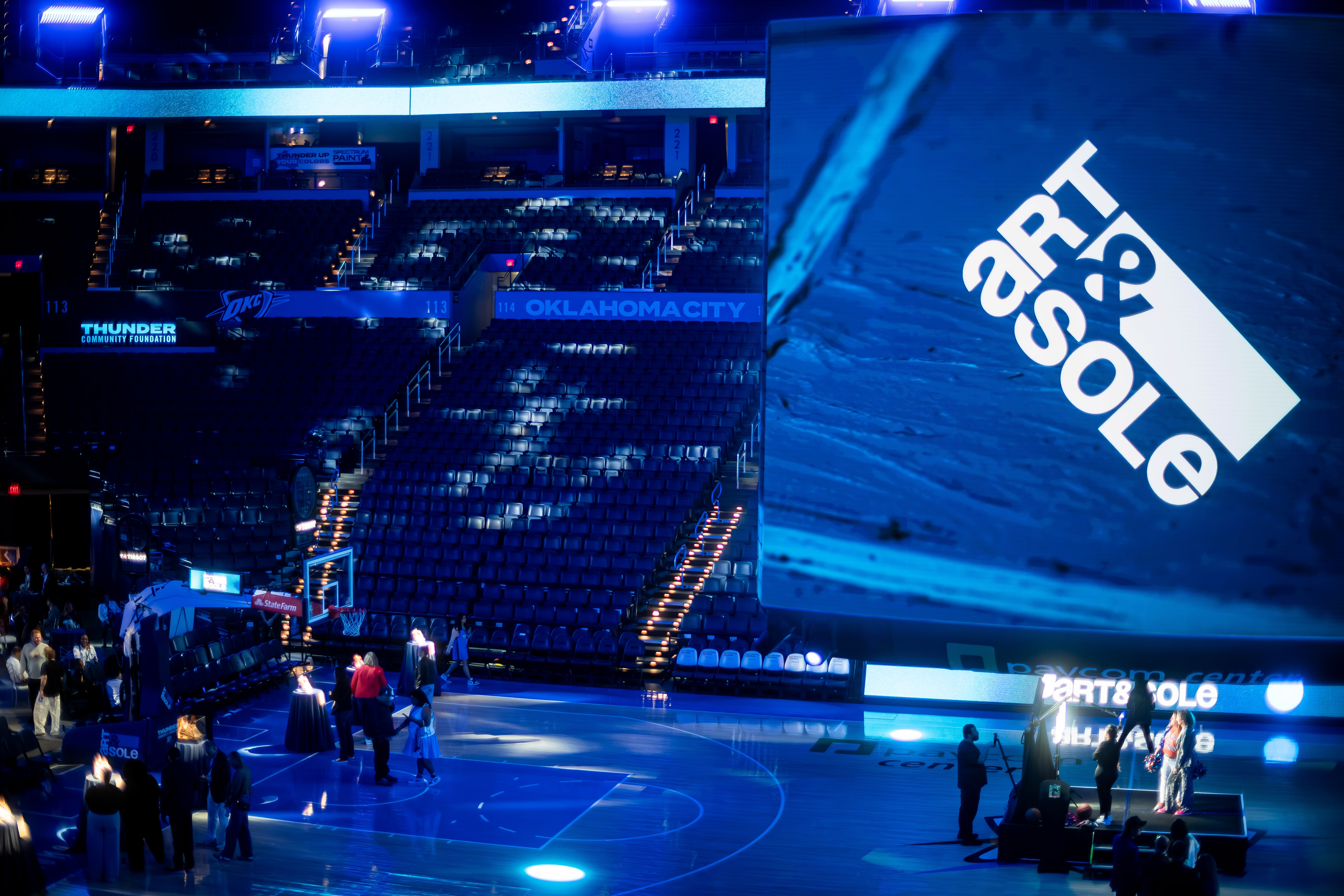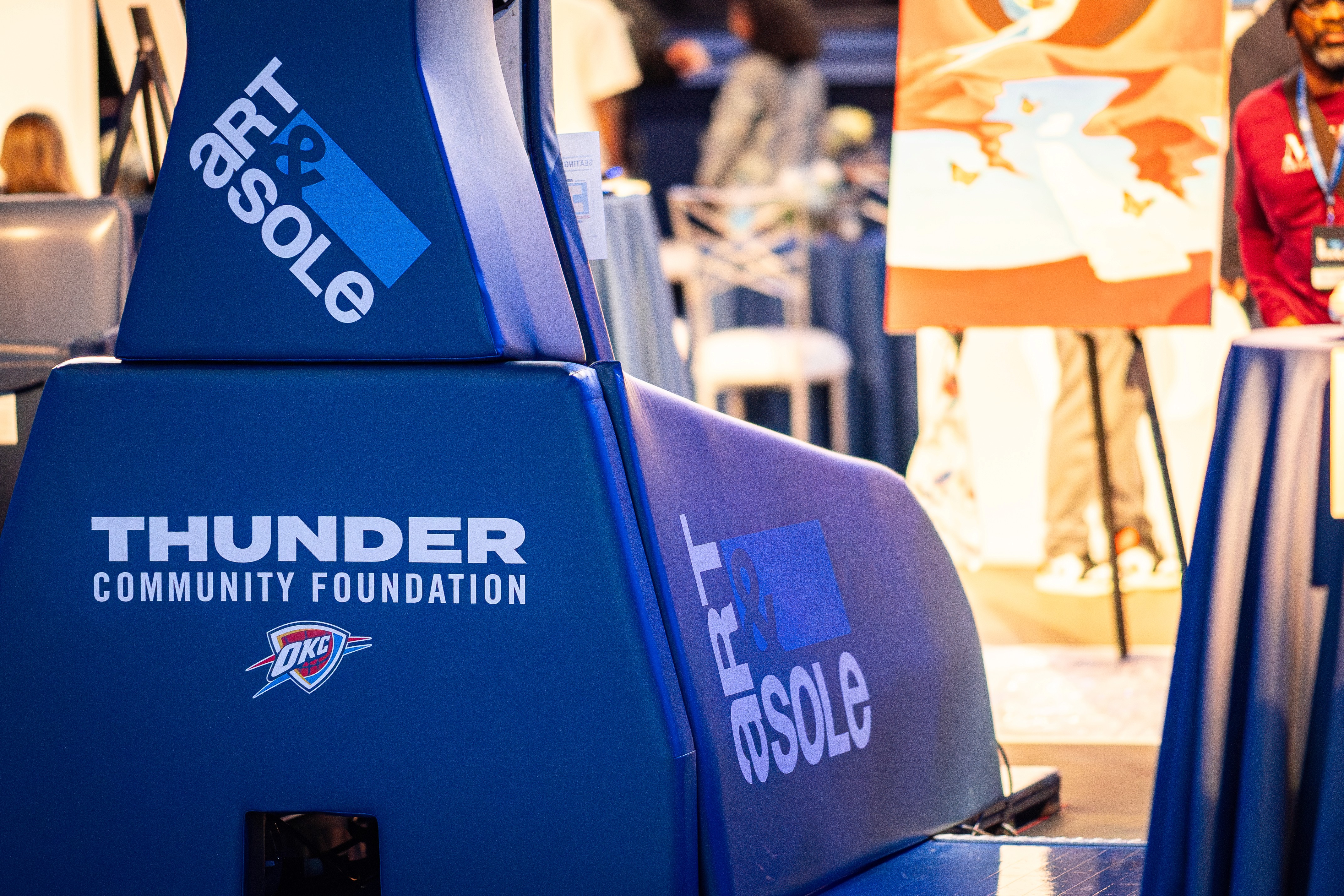 Brand identity and environmental graphics for Art & Sole, a Thunder Community Foundation art auction hosted on the OKC Thunder court.
