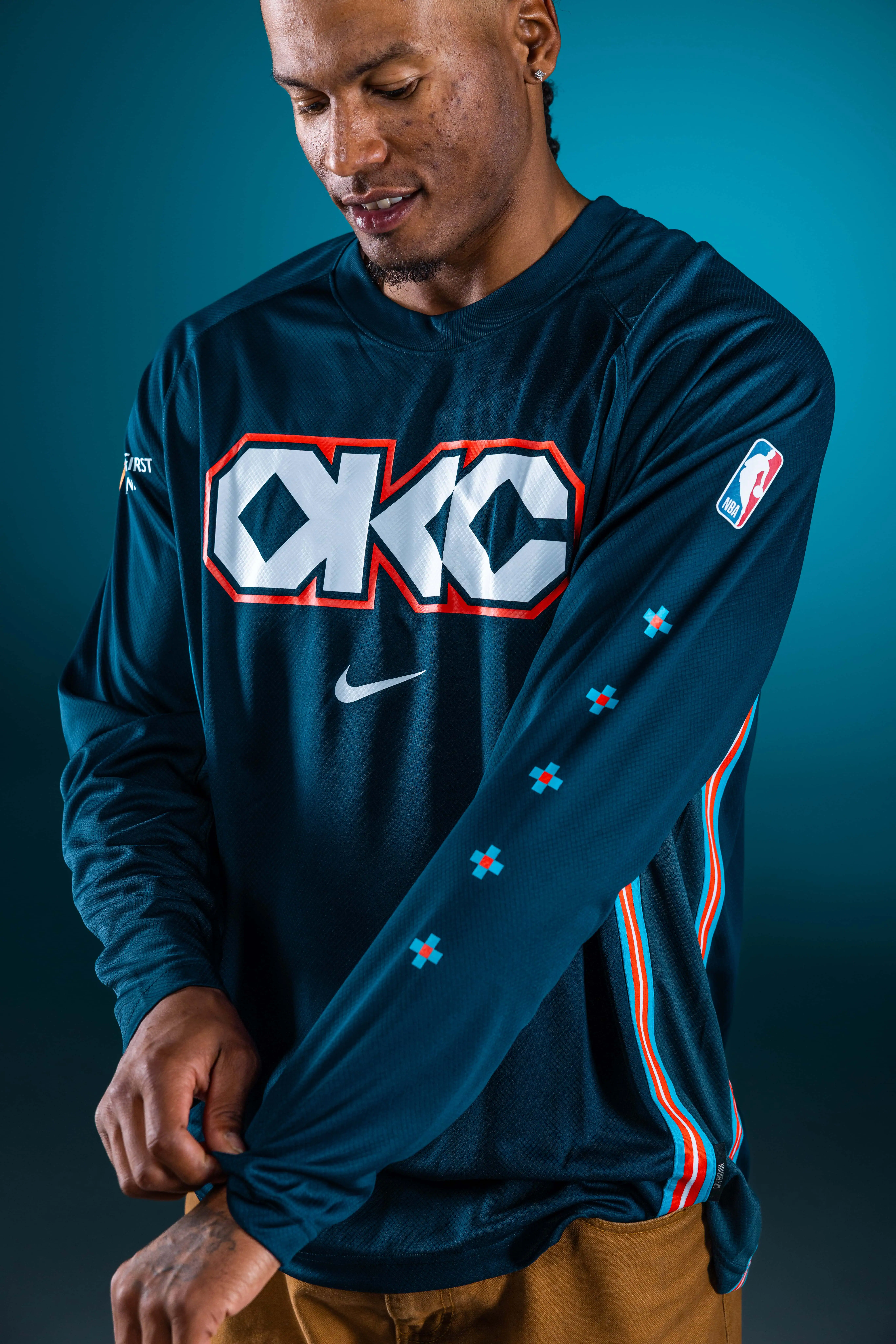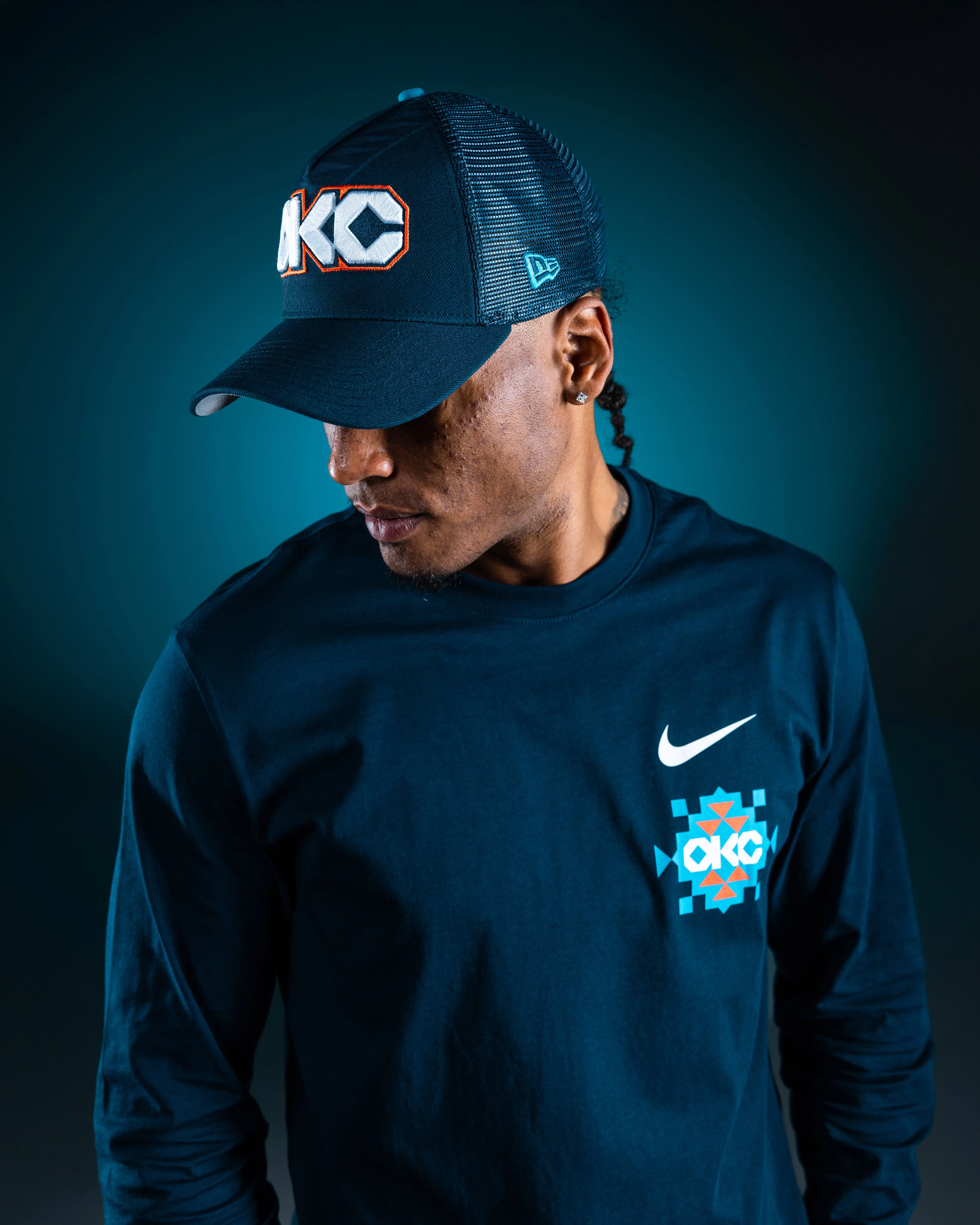 A culturally rooted photoshoot for the Thunder’s City Edition campaign, featuring Native American models to authentically honor the uniform’s story while keeping the narrative and merchandise at the forefront.